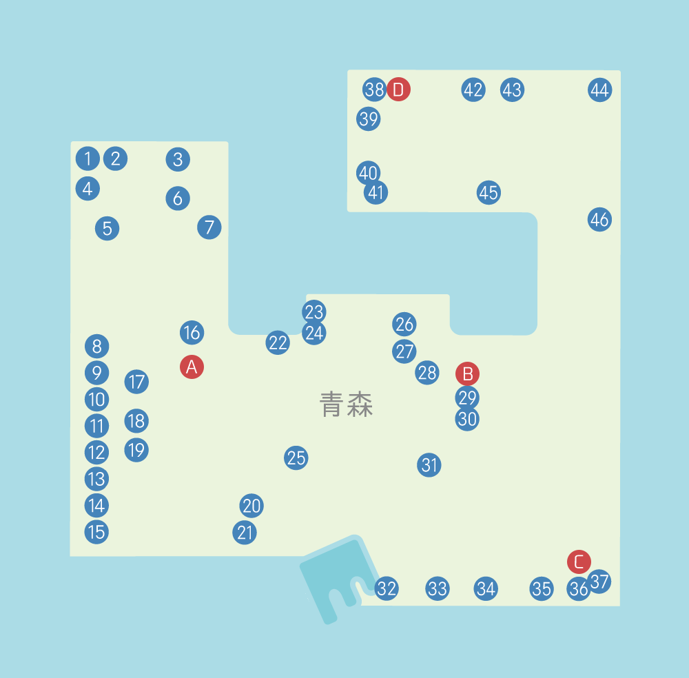 | 21 | 大鰐虹貝 | 22 | 細越 | 23 | 浅虫 | 24 | 久栗坂 | 25 | 西十和田 |
