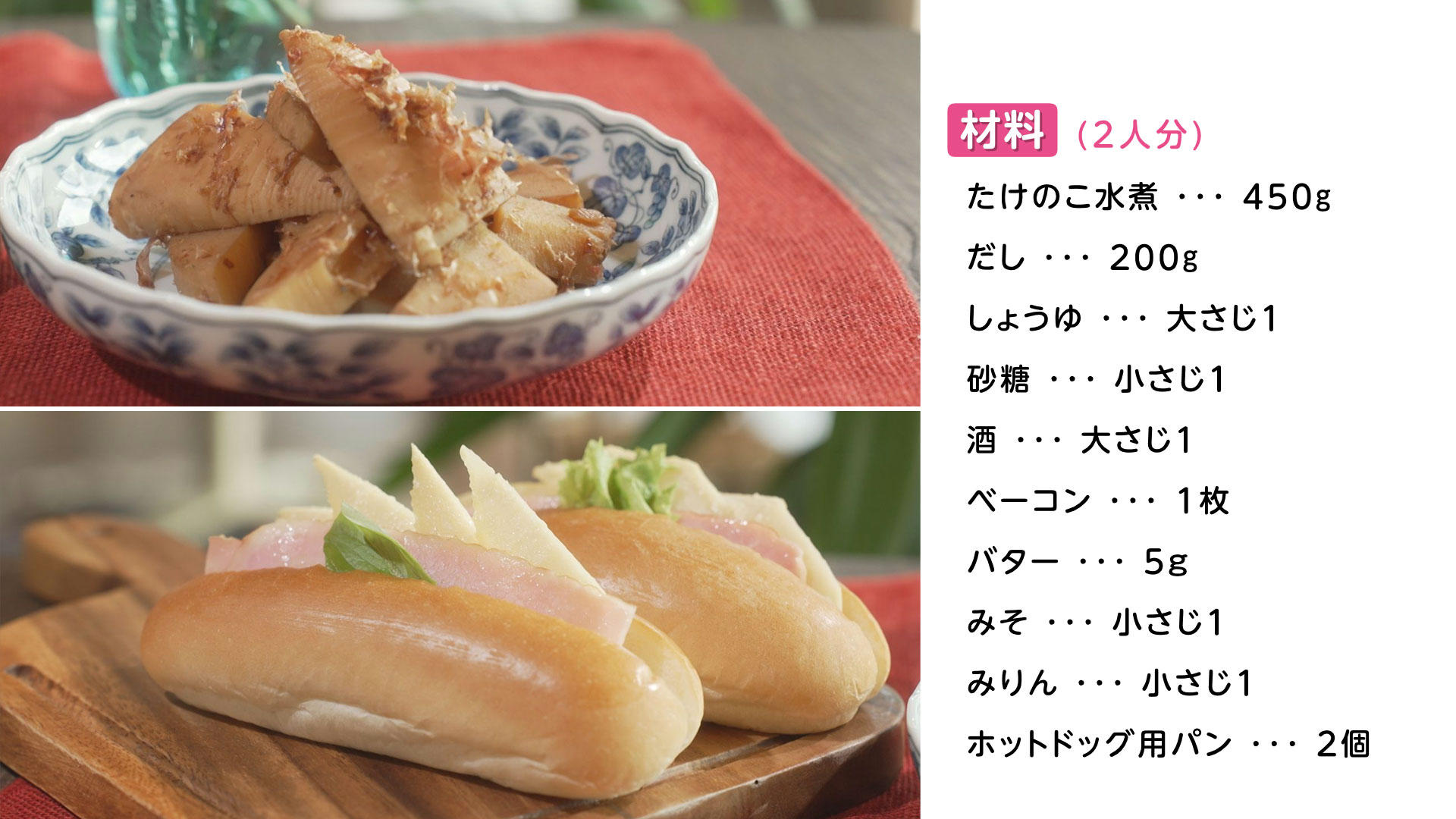 たけのこの土佐煮&みそバターホットドック