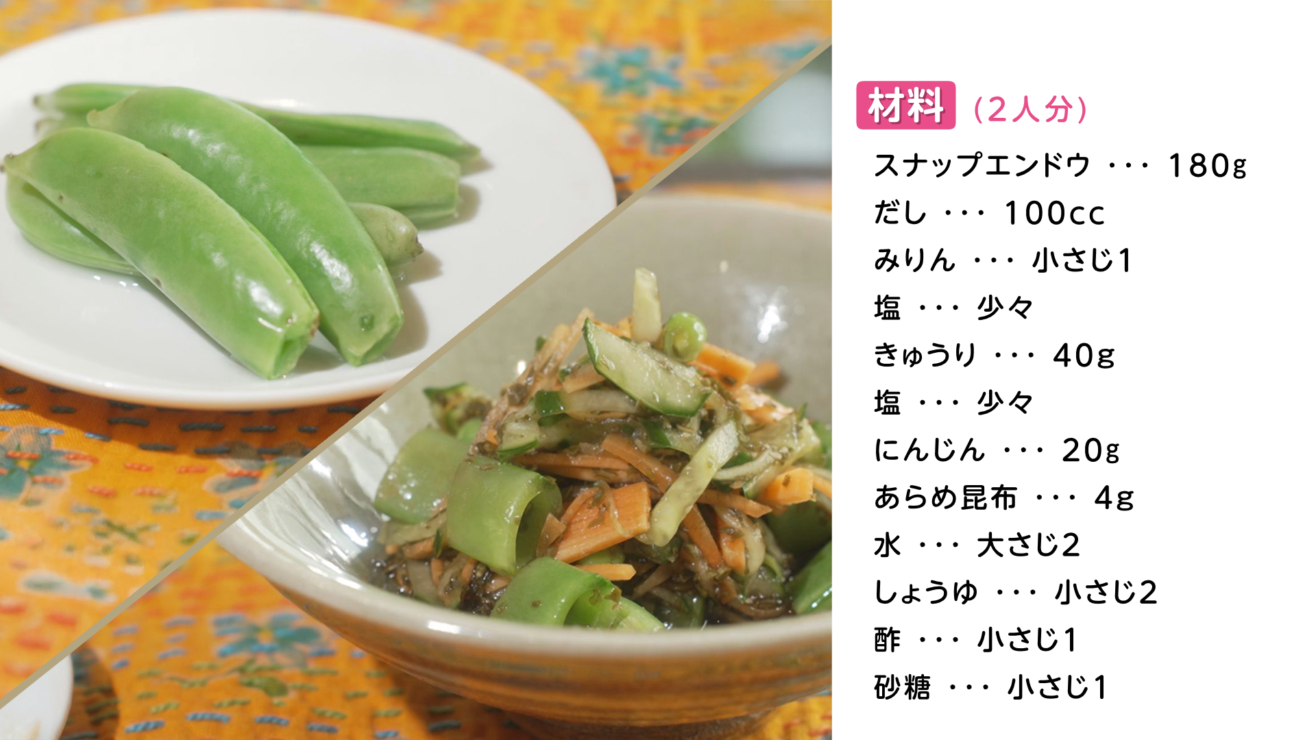 スナップエンドウのだし漬け&とろとろ和え