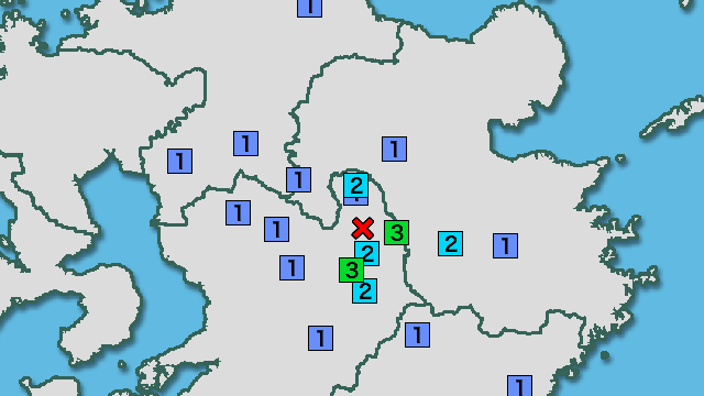 | 震度3 | 阿蘇市内牧 産山村山鹿 熊本高森町高森 竹田市会々 |