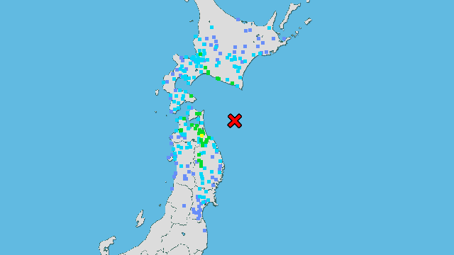 | 震度5弱 | 七戸町七戸 青森南部町平 三沢市桜町 六戸町犬落瀬 横浜町林ノ脇 横浜町寺下 六ヶ所村尾駮 三戸町在府小路町 むつ市川内町 東通村砂子又蒲谷地 東通村尻屋 東通村白糠 五所川原市栄町 五所川原市敷島町 つがる市柏 つがる市稲垣町 つがる市木造 平内町小湊 外ヶ浜町蟹田 鶴田町鶴田 函館市新浜町 新篠津村第47線 千歳市北栄 新千歳空港 千歳市若草 南幌町栄町 苫小牧市末広町 苫小牧市旭町 白老町竹浦 厚真町鹿沼 安平町早来北進 むかわ町松風 新冠町北星町 新ひだか町静内山手町 浦河町潮見 様似町栄町 浦幌町桜町 十勝大樹町東本通 盛岡市薮川 盛岡市渋民 二戸市浄法寺町 八幡平市田頭 八幡平市野駄 滝沢市鵜飼 久慈市枝成沢 登米市迫町 |