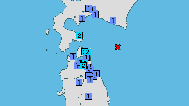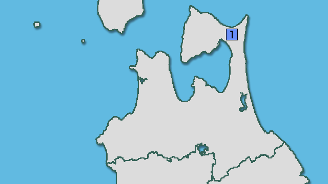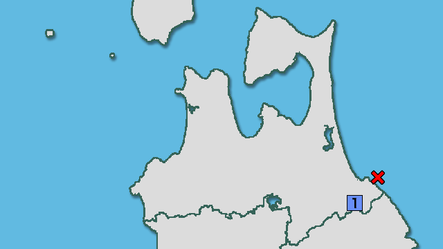 | 震度1 | 平内町小湊 五戸町古舘 むつ市大畑町中島 東通村砂子又沢内 |