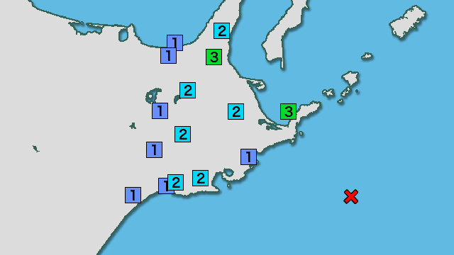 | 震度3 | 標津町北2条 根室市落石東 |