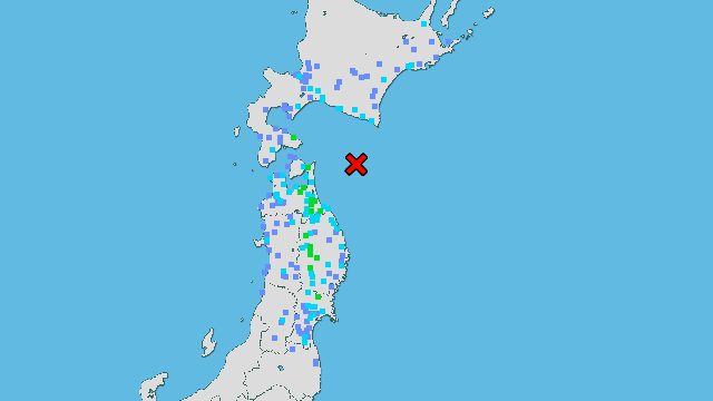 | 震度3 | 函館市泊町 函館市新浜町 八戸市内丸 八戸市南郷 野辺地町田狭沢 野辺地町野辺地 七戸町森ノ上 六戸町犬落瀬 おいらせ町中下田 おいらせ町上明堂 五戸町古舘 五戸町倉石中市 青森南部町苫米地 青森南部町平 東通村砂子又沢内 盛岡市薮川 八幡平市田頭 紫波町紫波中央駅前 矢巾町南矢幅 花巻市材木町 北上市柳原町 登米市登米町 |
