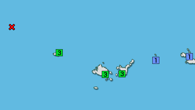 | 震度3 | 石垣市新栄町 与那国町久部良 与那国町役場 竹富町黒島 |