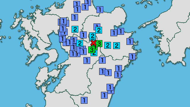 | 震度3 | 阿蘇市一の宮町 産山村山鹿 南阿蘇村中松 |