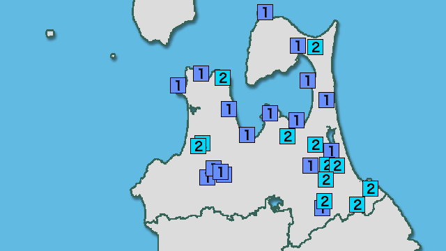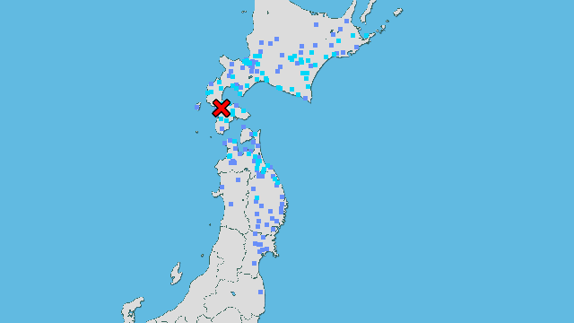 | 震度1 | 八戸市島守 八戸市湊町 十和田市奥瀬 東北町塔ノ沢山 青森南部町沖田面 横浜町林ノ脇 横浜町寺下 六ヶ所村尾駮 六ヶ所村出戸 新郷村戸来 五所川原市金木町 つがる市森田町 つがる市車力町 平内町小湊 蓬田村阿弥陀川 板柳町板柳 鶴田町鶴田 平川市柏木町 藤崎町西豊田 弘前市弥生 弘前市城東中央 黒石市市ノ町 鰺ヶ沢町舞戸町鳴戸 西目屋村田代 むつ市川内町 大間町大間 東通村砂子又蒲谷地 東通村砂子又沢内 |