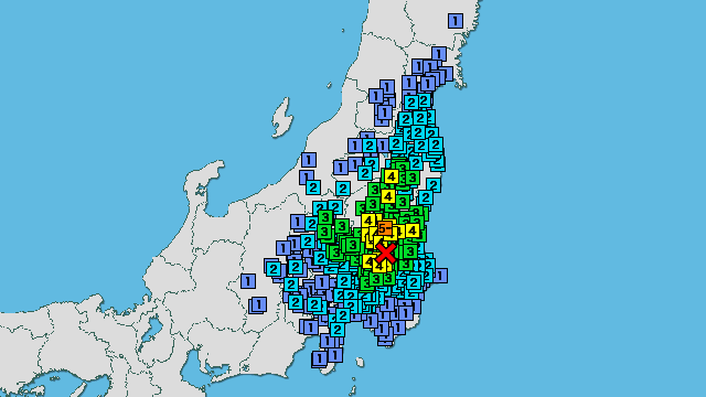 | 震度3 | 宇都宮市塙田 宇都宮市旭 宇都宮市中里町 栃木市旭町 栃木市大平町富田 栃木市藤岡町藤岡 栃木市西方町本城 栃木市万町 栃木市都賀町原宿 鹿沼市口粟野 小山市神鳥谷 下野市笹原 足利市大正町 佐野市葛生東 佐野市高砂町 佐野市田沼町 栃木さくら市氏家 栃木さくら市喜連川 那須烏山市大金 上三川町しらさぎ 茂木町北高岡天矢場 茂木町茂木 芳賀町祖母井 壬生町壬生甲 高根沢町石末 栃木那珂川町馬頭 栃木那珂川町小川 日光市瀬川 日光市鬼怒川温泉大原 日光市芹沼 矢板市本町 那須塩原市あたご町 那須塩原市塩原庁舎 塩谷町玉生 那須町寺子 白河市郭内 白河市新白河 白河市東 白河市大信 須賀川市八幡山 須賀川市岩瀬支所 須賀川市八幡町 鏡石町不時沼 西郷村熊倉 泉崎村泉崎 中島村滑津 矢吹町一本木 棚倉町棚倉中居野 玉川村小高 浅川町浅川 古殿町松川新桑原 水戸市金町 水戸市千波町 水戸市栗崎町 笠間市下郷 日立市助川小学校 日立市十王町友部 常陸太田市町屋町 常陸太田市町田町 常陸太田市高柿町 常陸太田市金井町 ひたちなか市南神敷台 ひたちなか市東石川 常陸大宮市中富町 常陸大宮市北町 常陸大宮市高部 常陸大宮市山方 常陸大宮市野口 那珂市福田 那珂市瓜連 小美玉市小川 小美玉市堅倉 小美玉市上玉里 茨城町小堤 大洗町磯浜町 城里町石塚 城里町阿波山 城里町徳蔵 東海村東海 大子町池田 筑西市門井 筑西市海老ヶ島 筑西市二木成 坂東市岩井 坂東市山 土浦市常名 土浦市田中 土浦市藤沢 茨城古河市仁連 茨城古河市下大野 石岡市柿岡 石岡市若宮 石岡市八郷 石岡市石岡 結城市中央町 下妻市本城町 下妻市鬼怒 常総市新石下 常総市水海道諏訪町 取手市寺田 つくば市天王台 つくば市研究学園 つくば市小茎 稲敷市江戸崎甲 かすみがうら市大和田 行方市玉造 つくばみらい市福田 八千代町菅谷 五霞町小福田 境町旭町 さいたま見沼区堀崎 さいたま中央区下落合 さいたま岩槻区本丸 川口市中青木分室 春日部市粕壁 春日部市金崎 春日部市谷原新田 八潮市中央 幸手市東 杉戸町清地 熊谷市桜町 行田市本丸 行田市南河原 加須市三俣 加須市騎西 加須市北川辺 加須市大利根 本庄市児玉町 羽生市東 鴻巣市中央 鴻巣市吹上富士見 深谷市仲町 久喜市下早見 久喜市青葉 久喜市菖蒲 久喜市栗橋 埼玉美里町木部 野田市東宝珠花 市川市大町 松戸市西馬橋 柏市旭町 柏市柏 鎌ケ谷市新鎌ケ谷 沼田市西倉内町 前橋市富士見町 桐生市元宿町 桐生市黒保根町 桐生市新里町 太田市西本町 館林市上三林町 館林市城町 渋川市赤城町 みどり市笠懸町 板倉町板倉 群馬明和町新里 千代田町赤岩 大泉町日の出 邑楽町中野 東京中野区江古田 東京杉並区高井戸 東京練馬区豊玉北 東京足立区神明南 |