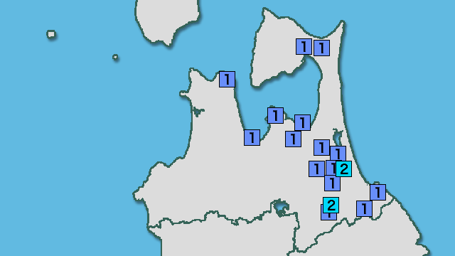 | 震度1 | おいらせ町上明堂 青森南部町平 八戸市湊町 八戸市内丸 八戸市南郷 十和田市西二番町 十和田市西十二番町 三沢市桜町 野辺地町野辺地 七戸町森ノ上 七戸町七戸 六戸町犬落瀬 東北町上北南 三戸町在府小路町 五戸町古舘 五戸町倉石中市 階上町道仏 青森市花園 平内町小湊 外ヶ浜町蟹田 むつ市金曲 むつ市大畑町中島 東通村砂子又沢内 |