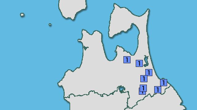 | 震度1 | 八戸市湊町 八戸市内丸 八戸市南郷 七戸町森ノ上 東北町上北南 おいらせ町中下田 三戸町在府小路町 五戸町古舘 青森南部町苫米地 青森南部町平 階上町道仏 |